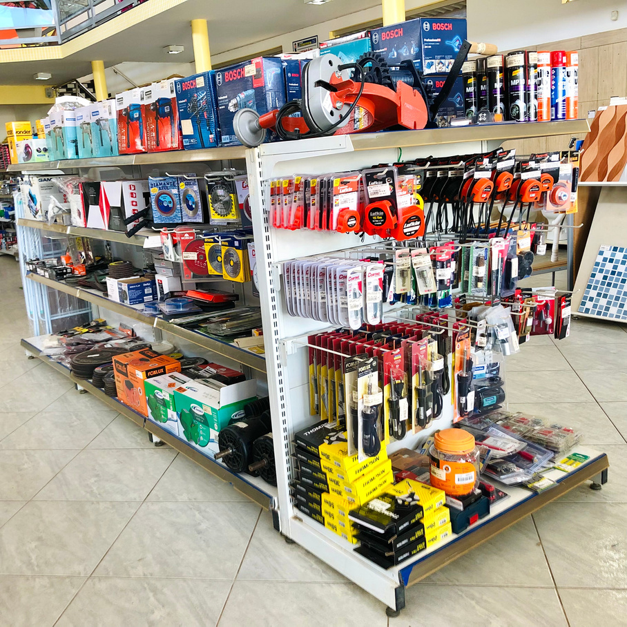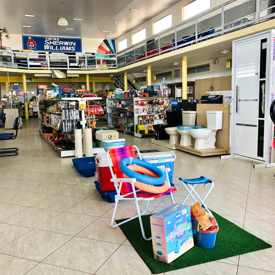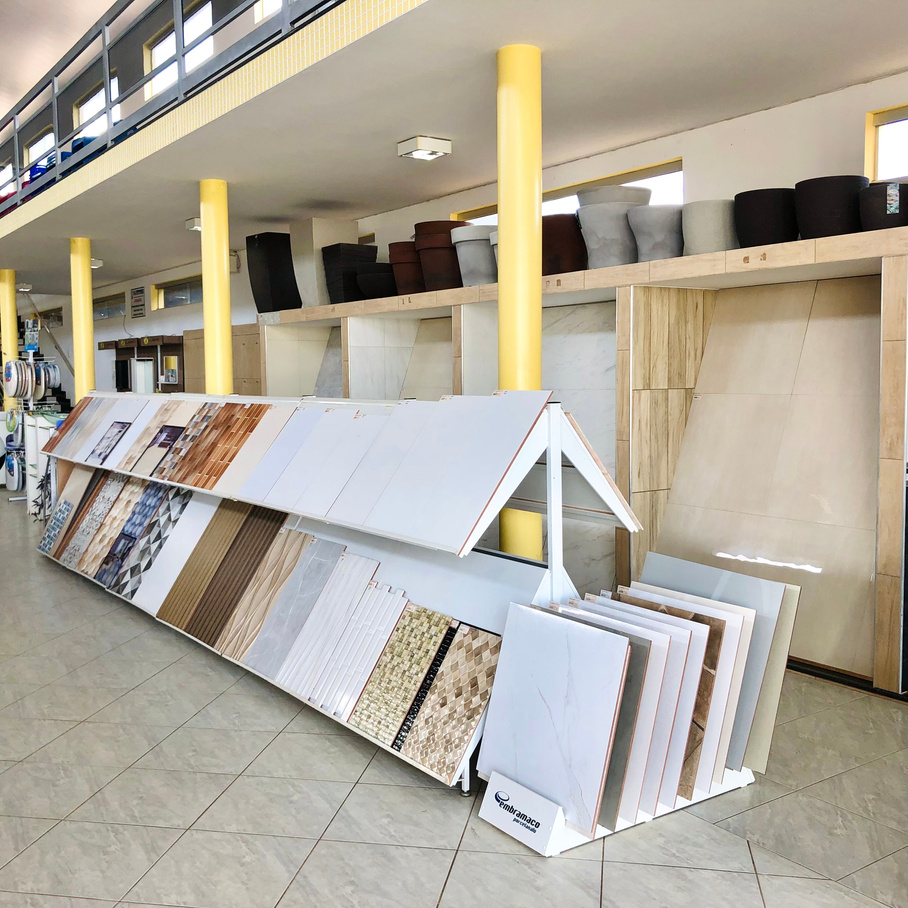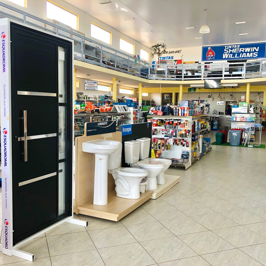 Dispomos de materiais de construção em geral para sua obra, incluindo uma variedade de pisos, portas, janelas, piscinas e itens de lazer, utilidades, tintas, materiais para acabamento e ferramentas.